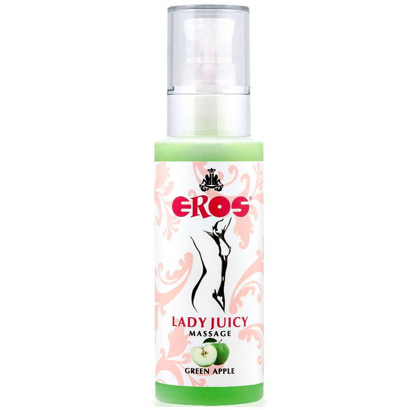 El Eros Lady Juicy massage es un fabuloso aceite de masaje con efecto calor e intenso sabor a Manzana
