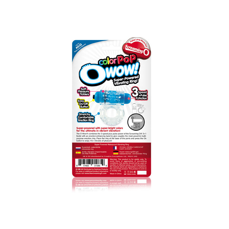 El anillo O Color Pop WOW es superelastico con una vibración de suave a potente, podrás elegir entre 3 velocodidades mas la velocidad de Pulso para estimulación intensa.
