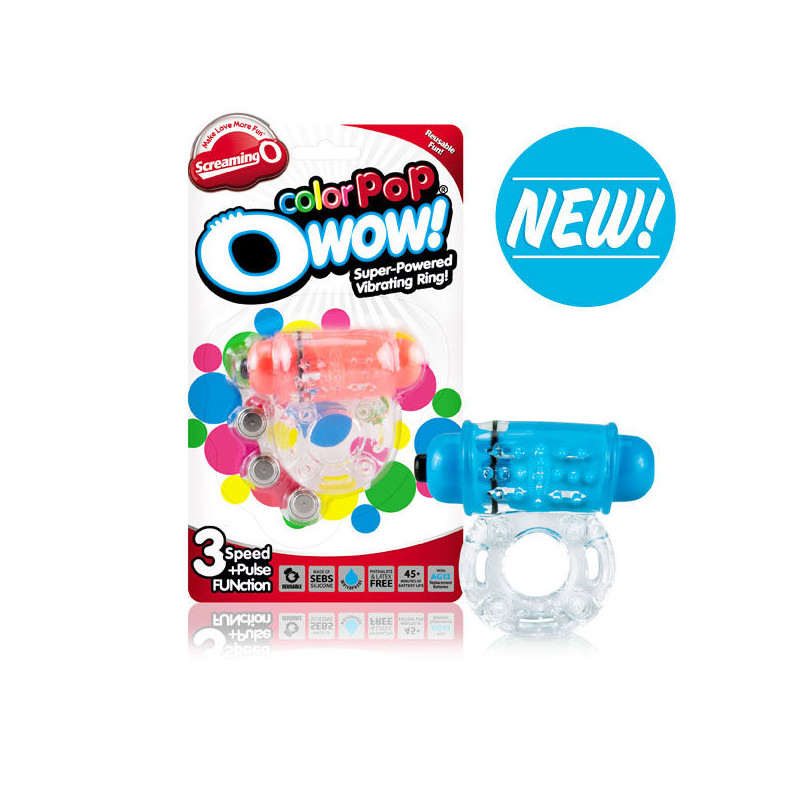 El anillo O Color Pop WOW es superelastico con una vibración de suave a potente, podrás elegir entre 3 velocodidades mas la velocidad de Pulso para estimulación intensa.