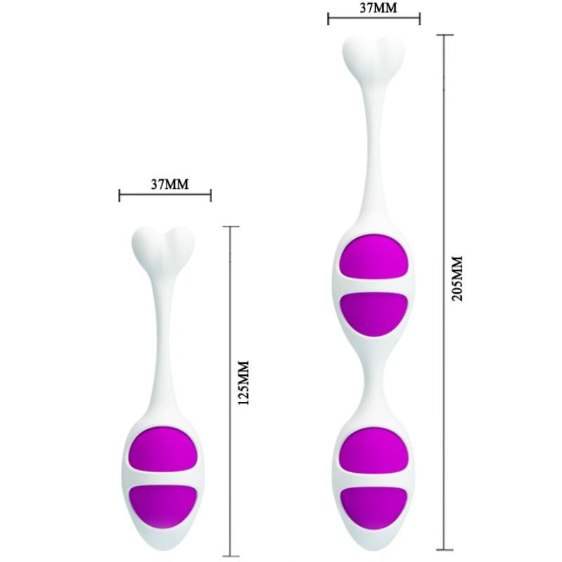 Hay muchos beneficios usando estas maravillosas bolas Kegel. Estas suaves y ovaladas bolas están envueltas en una cubierta de silicona blanca con un cordón acabado en forma de pequeño corazón. Cada bola cuenta con pequeño peso interior que se mueve dentro de la bolita.