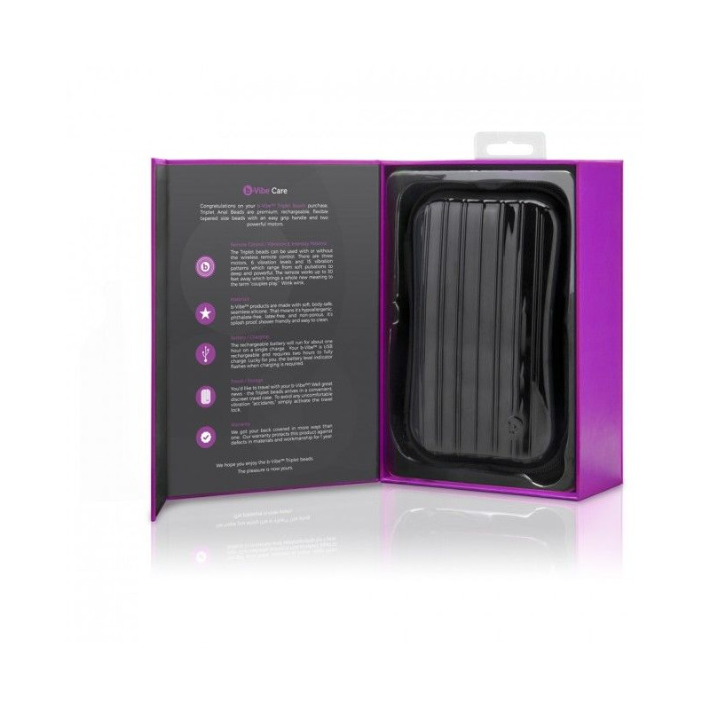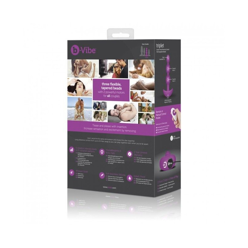 pB vibe triplet es un juego de bolas anales con dos motores potentes completamente flexible y adaptable a la zona anal pullistrongVibracioacuten para placer y relajacioacutennbsp strongmdash El emocionante placer de la vibracioacuten ayuda a la relajacioacuten de los muacutesculos alrededor del ano El TripletnbspPlug incluye 6 niveles de intensidad y 15 modos de vibracioacuten que ayudan a experimentar una sensacioacuten anal uacutenica lilistrong100 Body Safe strongnbspmdash The Novice Plug estaacute fabricado en silicona premium suave y sedosa es 100 hipoalergeacutenico libre de phalatos libre de latex y no poroso lilistrongNo solo para hombres Gays strongnbspmdash nbspEl maravilloso mundo del placer anal no solo ha sido descubierto en la historia por hombres gays millones de hombres heterosexuales han avanzado en su sexualidad para descubrir que el placer sexual tambieacuten estaacute en la zona anal lilistrongnbspControl remoto strongnbspmdashB vibe control remoto inteligentenbspeste juguete viene dotado un control remoto faacutecil de usar y que trabaja con hasta 30 formas diferentes Asiacute que experimeacutentalo solo o en pareja lo puedes usar en una relacioacuten sexual o como juego en puacuteblico Oportunidades infinitas nbsp lilistrongUSB Bateria recargable strongnbspmdash Accionado con la CR2032 Lithium ofrece unas dos horas de juego anal con la bateriacutea cargada El indicador inteligente de bateriacutea hace que la luz parpadee cuando necesita bateriacutea nbsp lilistrongSumergible a primer nivel strongnbspmdash El Novice Plug estaacute disentildeado para usar bajo la ducha pero no es vaacutelido para sumergirlo bajo el agua lilistrongDiscreto para viajesnbsp strongmdash El Novice Plug incorpora una bolsa discreta de viajes y ademaacutes el vibrador tiene un bloqueo que ayuda a que no se acciones por error en ninguna situacioacuten lilistrong1 antildeo de garantiacuteanbsp strongmdash Nuestra garantiacutea protege a tu juguete de defectos en materiales o mal funcionamiento por 1 antildeo lilistrongGratis guiacutea de juego analnbsp strongmdash Nosotros creemos que tu juego anal debe ser 100 satisfactorio Por esto incluimos una pequentildea guiacutea para jugar con B vibe de la mejor forma y sacarle el maacuteximo rendimiento li ulpLa revista Menacutes Healthnbsp y Brides han nombrado a nuestros juguetes como el mejor sextoy pp styletext align centeriframe allowautoplay encrypted media allowfullscreen frameborder0 height400 scrollingno srchttps wwwyoutubecom embed xjLJr6angsrel0ampcontrols0ampshowinfo0 width700 iframe p