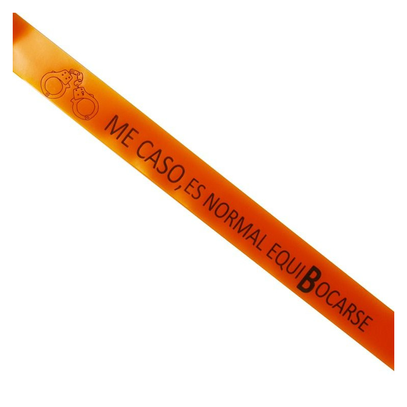 Banda especial despedidas solteros rotulada con la frase "Me caso, es normal equiBocarse"