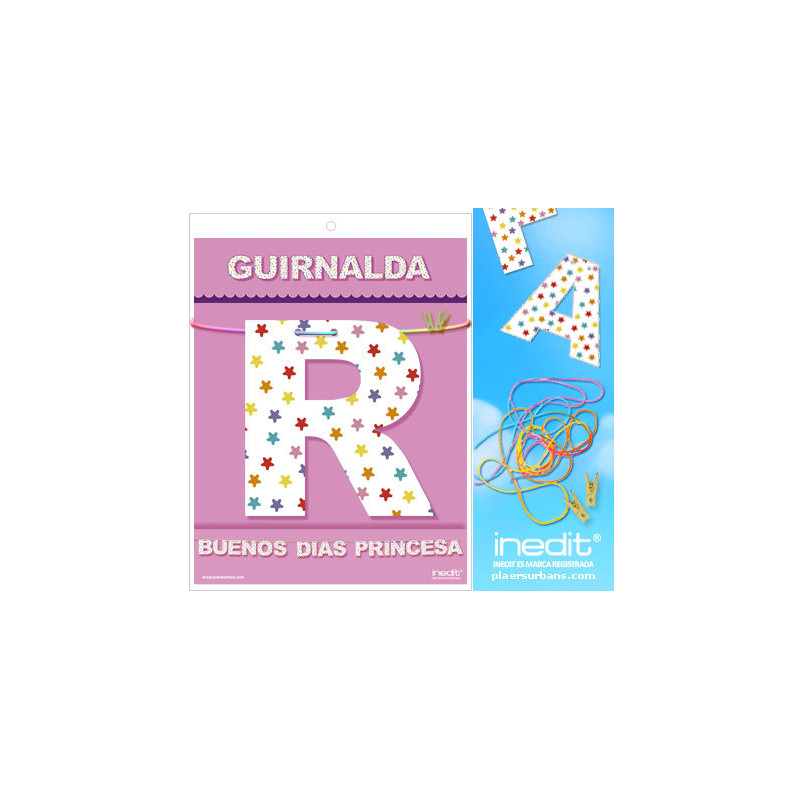 GUIRNALDA BUENOS DIAS PRINCESA (Cartulina impresa a dos caras 220gr) Contenido: Letras, cordel arco iris 3 metros, 2 Mini pinzas de madera. /