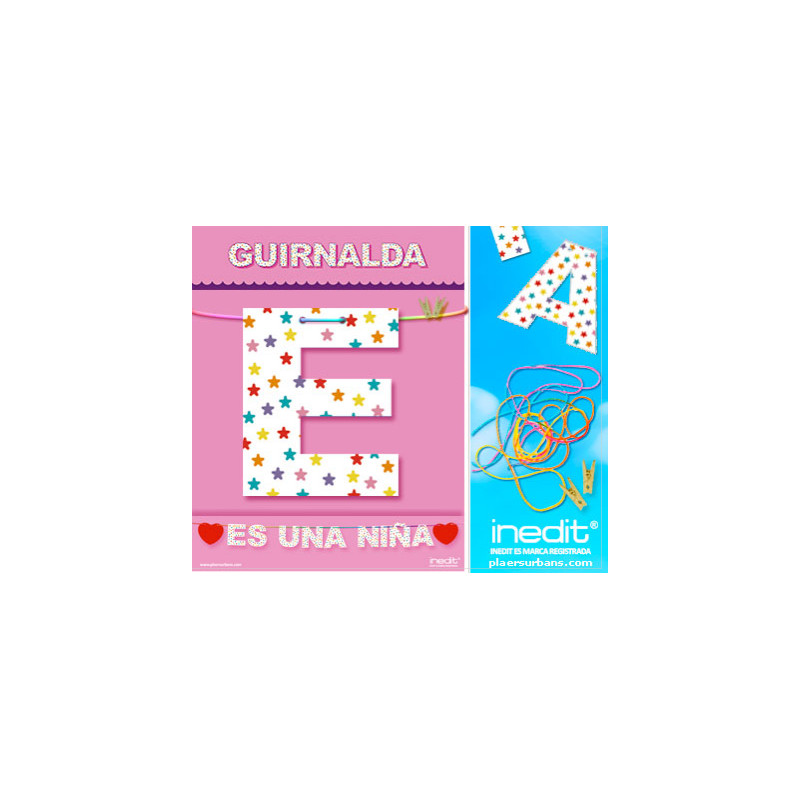 GUIRNALDA ES UNA NIÑA (Cartulina 220gr) (Cartulina impresa a dos caras 220gr) Contenido: Letras, cordel arco iris 3 metros, 2 Mini pinzas de madera. /
