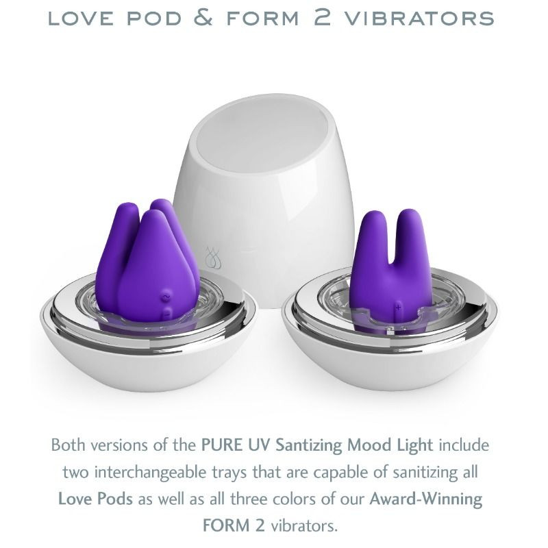 - Funciona con todos los tipos de Love Pod y los FORM 2. Ambas versiones incluyen una bandeja intercambiable para realizar su función de desinfección