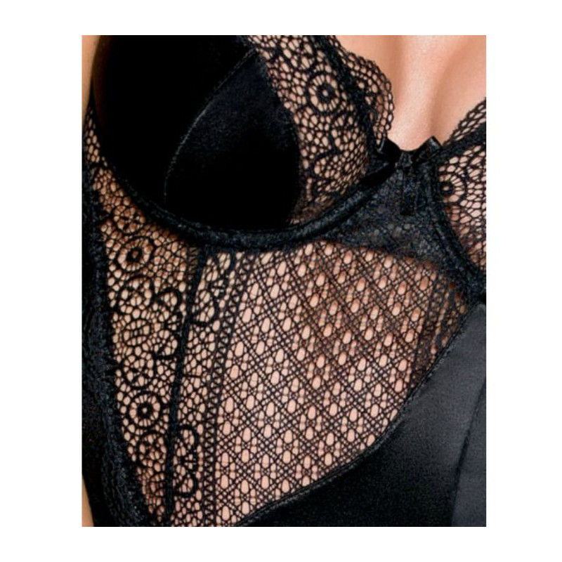 El chemise de la colección Zahara es una sensual pieza de color negra con semitransparencias que le hacen tener un diseño exclusivo. Está fabricado por Casmir, lo cual significa que es sinonimo de Alta Lenceria y que cada prenda ha sido confeccionada en Europa con un riguroso control que da como resultado a una prenda exclusiva.