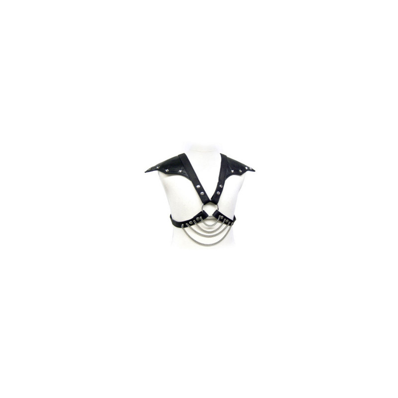 Practica el BDSM, con este Arnes leather para hombre, con correas ajustables y cadenas metalicas