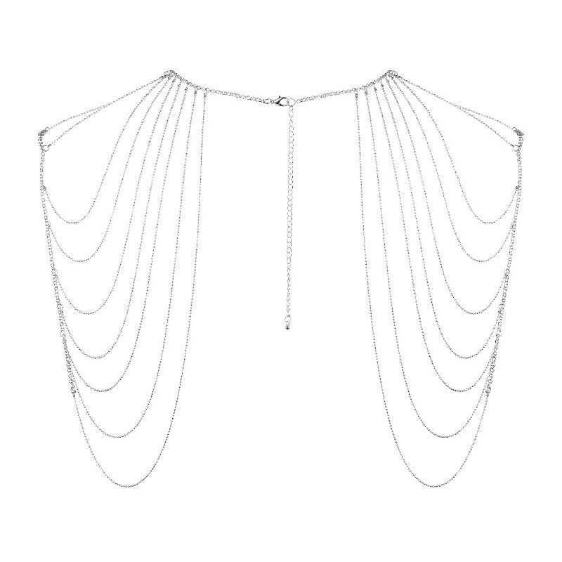 pPequentildeas cadenas plateadas que despiertan la imaginacioacuten de quien las lleva y las mira Un complemento que antildeade un toque sensual a tu look descubre fantasiacuteas secretas y despierta al deseo iexclLa seduccioacuten estaacute presente en todo detalle ppContenido Adorno para hombros y espalda de cadenas metaacutelicas pp nbsp nbsp iexcl100 Ajustable Las cadenas de este complemento son ajustables pp nbsp nbsp Reversible Tuacute eliges coacutemo colocar el complemento puedes atarlo delante o detraacutes pp nbsp nbsp iexclLa sensualidad sale a la calle Complemento perfecto para antildeadir un toque sensual a tu look pp nbsp nbsp Combiacutenalo con un look de noche lenceriacutea o simplemente con tu piel pp nbsp nbsp iexclConjunto de escaacutendalo Usa tu complemento Magnifique con tu lenceriacutea maacutes sexy o tus pezoneras favoritas nbsp pp nbsp nbsp Disentildeo inspirado en las sensuales bailarinas de los cabarets neoyorquinos donde la seduccioacuten estaacute presente en todo detalle pp nbsp nbsp Disentildeo exclusivo por Bijoux Indiscrets pp nbsp nbsp iexclJuega sin problemas No contiene niacutequel por lo que no causa reacciones aleacutergicas pp nbsp nbspiquestJugamos El aspecto elegante de nuestros complementos engantildean convieacutertelos en los instrumentos ideales en tus momentos ppnbsp nbsp nbspde pasioacuten pp styletext align centeriframe allowfullscreen frameborder0 height300 scrollingno srchttps wwwyoutubecom embed 35 d1Vjjeocrel0ampcontrols0ampshowinfo0 width800 iframe p
