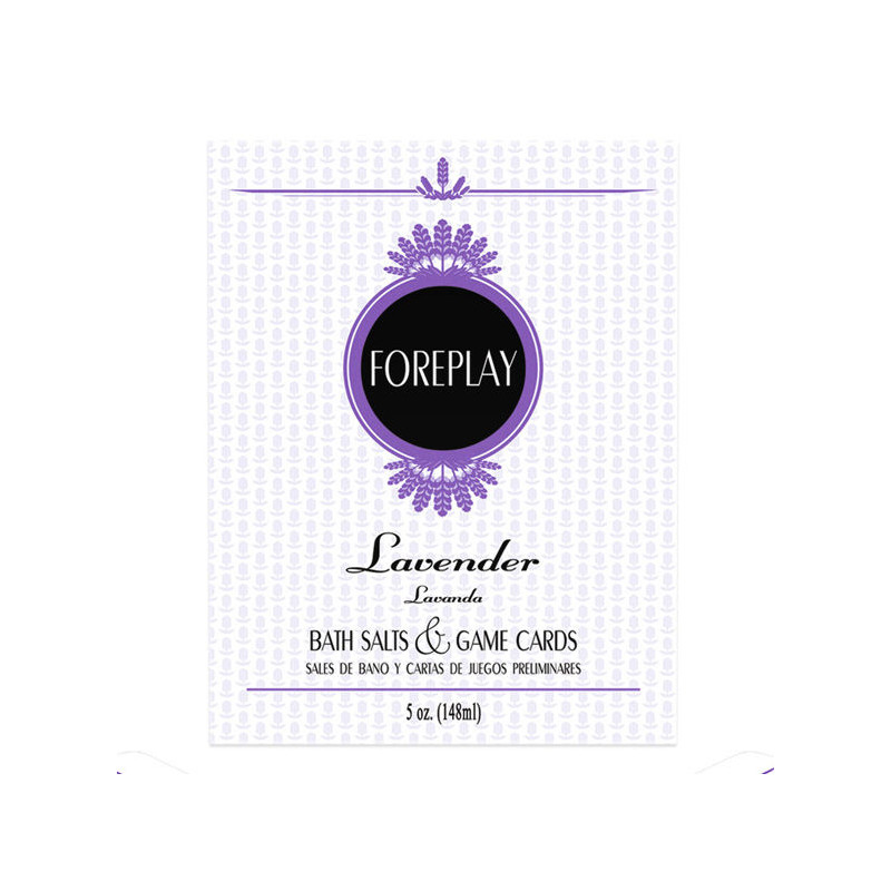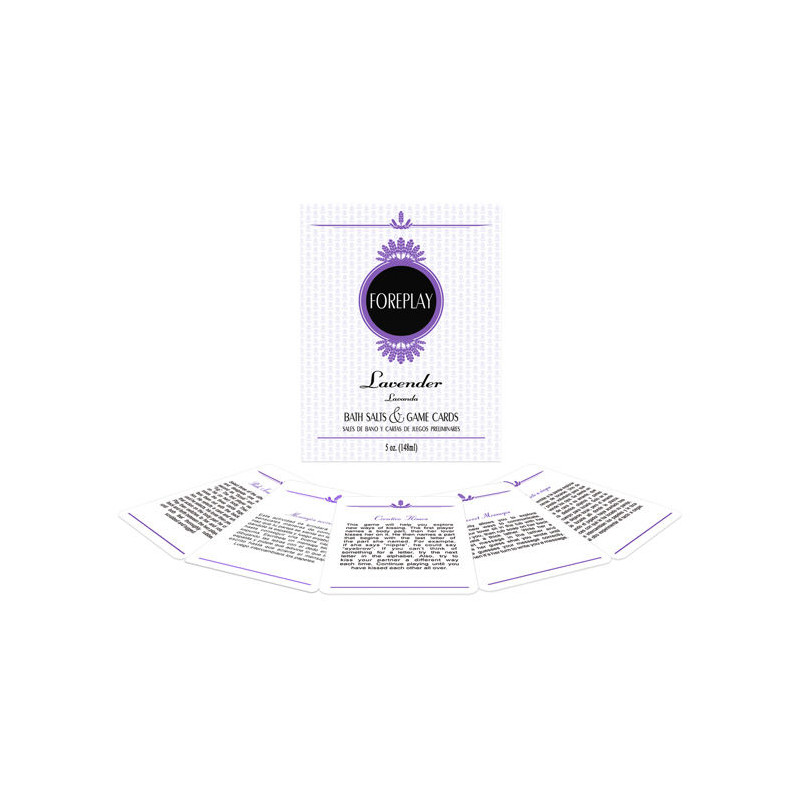 145 gramos de sales de baño con aroma de lavanda ( para 5 baños ) y 5 cartas de juegos preliminares (resistente al agua)
