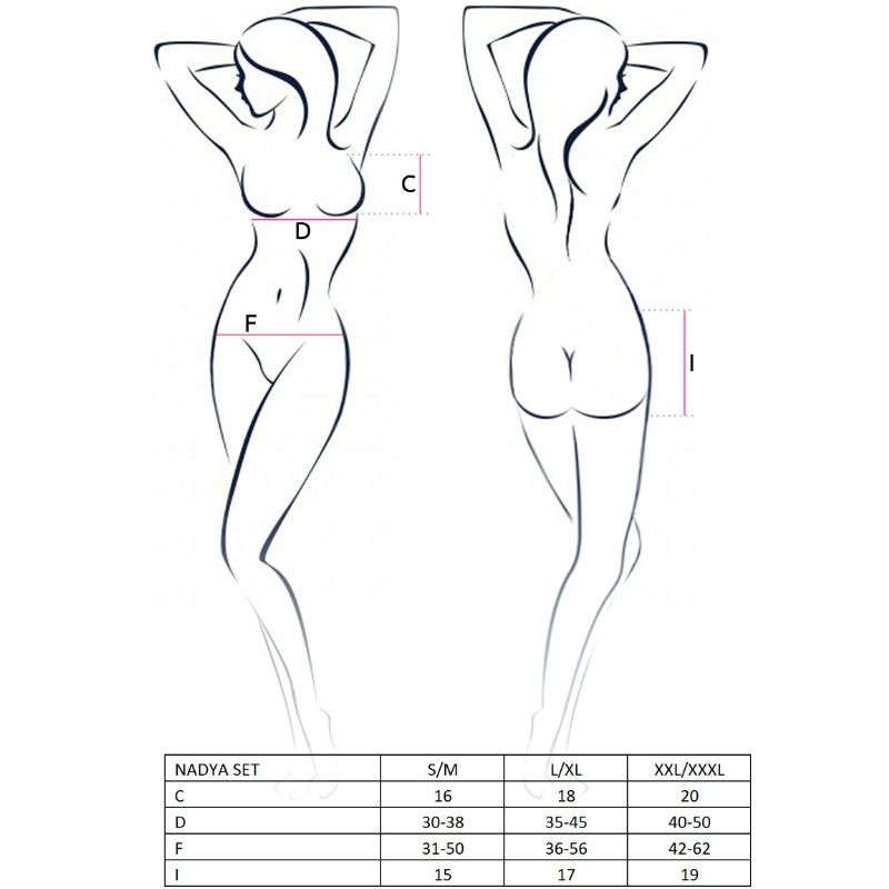 El set de la colección Nadya es un fabuloso conjunto de lencería de diseño espectacularmente sexy con el que te convertirás en una bomba de seducción, fabricado por la prestigiosa marca de lencería Passion