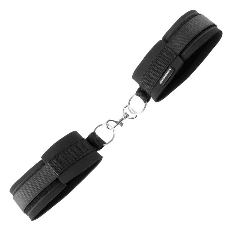 Castiga y complace a tu pareja con el set Ultra Cuffs. Cada esposa está forrada con un lujoso satín y envuelto en una banda de vinilo super resistente conectadas por una pinza de muelle y y dos fuertes anillos.