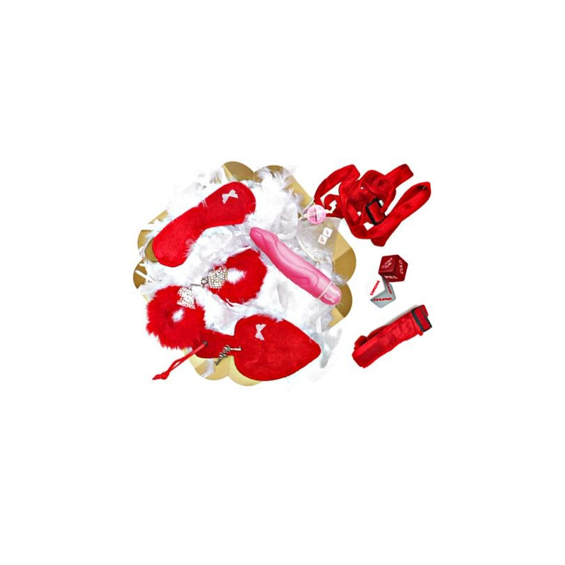 .Contenido: Boa 120 cm, Esposas Diamantes, Vibrador Lady, Pala Bondage Pedreria, Antifaz Bondage Pedreria, 2 Ataduras Terciopelo Bondage, Juego 2 Mini dados (Bolsita Organza)