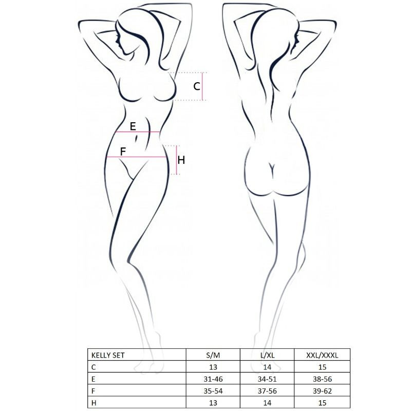 El set de la colección Kelly es un fabuloso conjunto de lencería de diseño espectacularmente sexy con el que te convertirás en una bomba de seducción, fabricado por la prestigiosa marca de lencería Passion