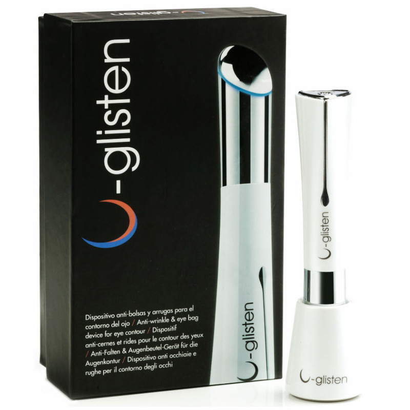 U-Glisten es un dispositivo portátil de fácil uso que, gracias a la micro-vibración y el calor que genera, ayuda a prevenir y disminuir las bolsas de ojos, las ojeras y la aparición de líneas de expresión y arrugas. Con un diseño ligero y elegante, está destinado al cuidado diario del contorno de ojos.