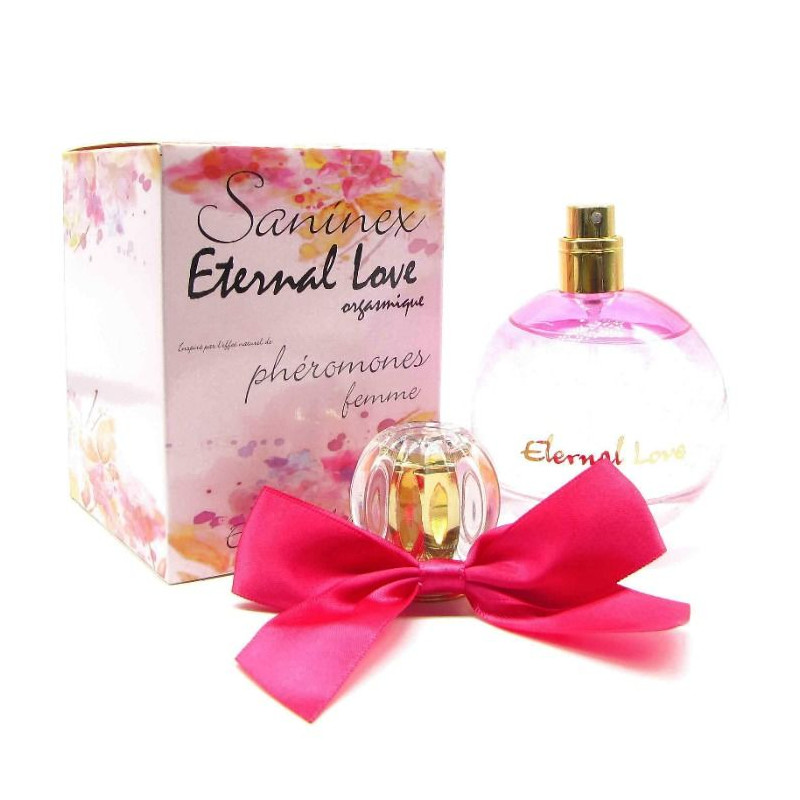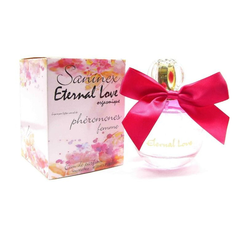 SANINEX ETERNAL LOVE ORGASMIQUE. Perfume de alta calidad que trasmite la intensidad de su esencia en un estallido floral, fresco, impactante y atractivamente seductor. Siempre realiza sus sueños. Sueña con la belleza del apasionado amor, su placer y su libertad. Está Inmersa en mundos de placeres, deseos y alegrías jóvenes audaces.