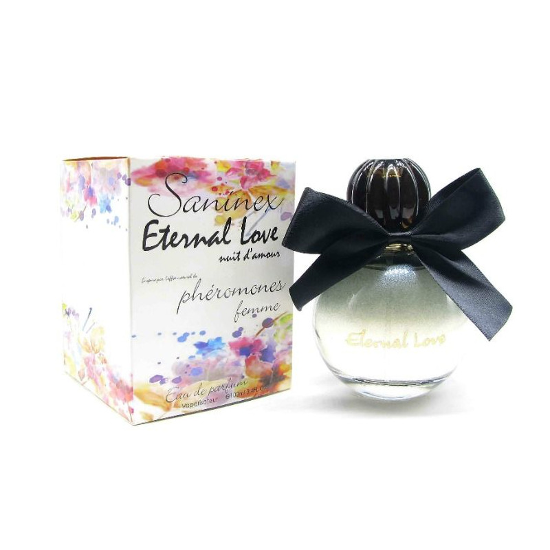 SANINEX ETERNAL LOVE NUIT D´AMOUR. Perfume de alta calidad que fusiona armonía perfecta entre su lujoso intenso aroma y la sencillez de las cosas perfectas. Sensualidad altamente erótica en estado puro. Siempre realiza sus sueños. Sueña con la belleza del apasionado amor, su placer y su libertad. Está Inmersa en mundos de placeres, deseos y alegrías jóvenes audaces. Una línea de perfume alta calidad inspirada en natural PHEROMONES, encargadas de crear tu deseada presencia.