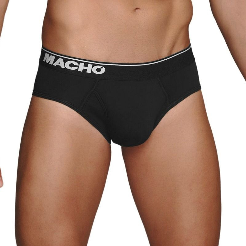 Su diseño con laterales anchos y adherentes al cuerpo, nos dan un máximo confort. El elástico de la cintura tiene el logo MACHO en el costado derecho, dándole un toque diferente y se presenta en colores blanco / gris, negro / blanco y azul, logrando una equilibrada mezcla de colores.