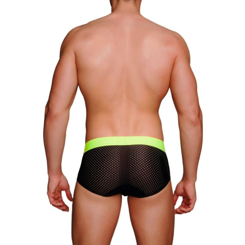 El MS080 es un calzoncillo deportivo para hombre. Es un Brief con corte laterales ancho dando la sensación de ser un mini boxer con una copa frontal que realza los genitales.