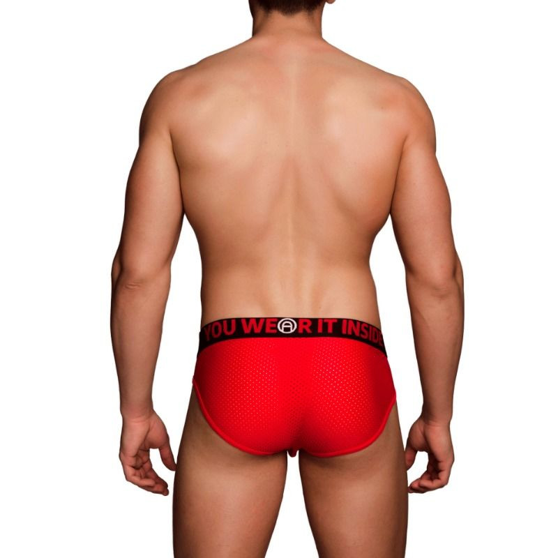 Sus tonos son tonos contrastados con el logo del elástico en la parte frontal y trasera, base roja y elástico negro con el logo YOU WEAR IT INSIDE en rojo y blanco. El diseño de la copa destaca los atributos del hombre, dándole mayor comodidad y agarre en movimientos de alto impacto deportivo o para el día a día .
