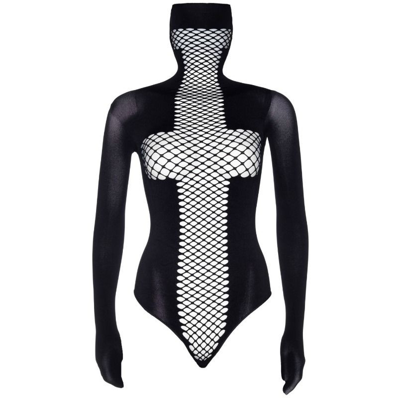Teddy de manga larga opaco y en cuerpo de red que cubre hasta la cabeza.