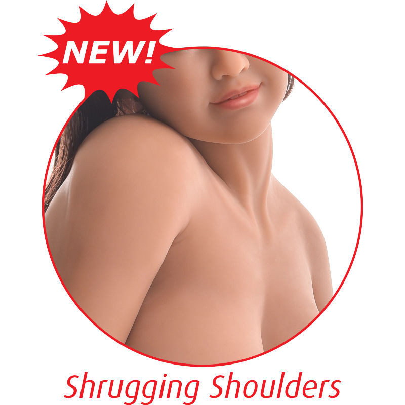 Mia tiene unos pechos enormes y carnosos muslos esperando que les des lo suyo. No puede esperar a darte una lección sobre como navegar sobre sus peligrosas curvas. Mide 1.60 metros , Mia va a realizar todas tus fantasías con su escultural cuerpo, hombros articulados, michelines realísticos, adorable cara e irresistible torso.
