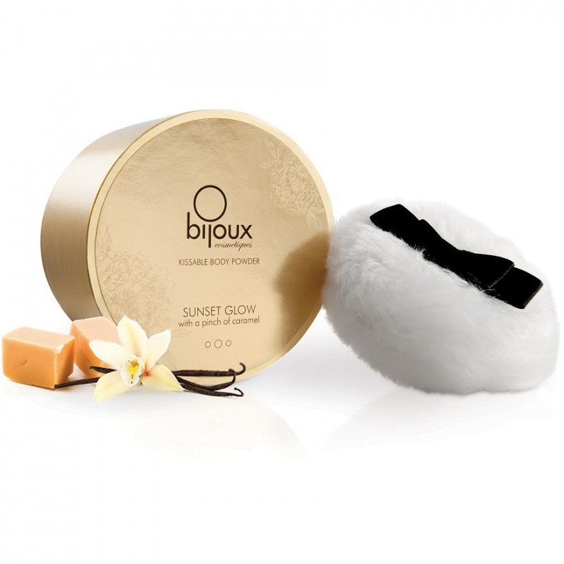 Al atardecer, conserva el fulgor dorado de los últimos rayos de sol en tu piel con estos polvos corporales con sabor que iluminan los lugares en los que se han de encontrar sus labios y tu piel.
