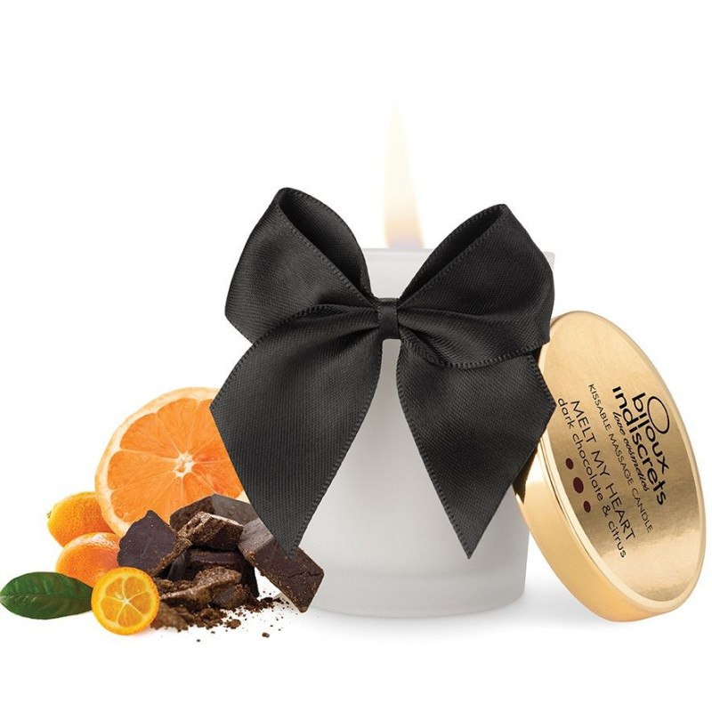 Abandónate a las sensaciones más placenteras con esta vela de masaje “besable” con exquisito aroma a chocolate negro.