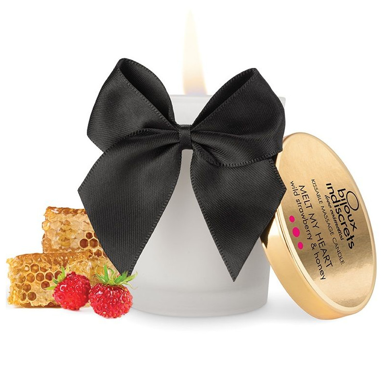 Abandónate a las sensaciones más placenteras con esta vela de masaje “besable” con exquisito aroma a fresa del bosque.
