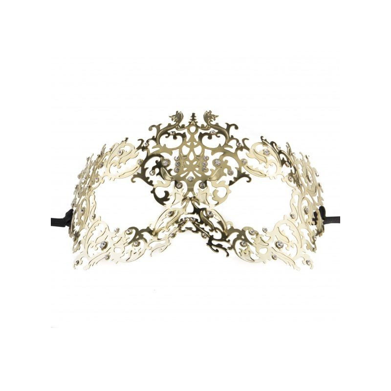 La máscara veneciana está asegurada con dos lazos de cinta y es muy ligera.