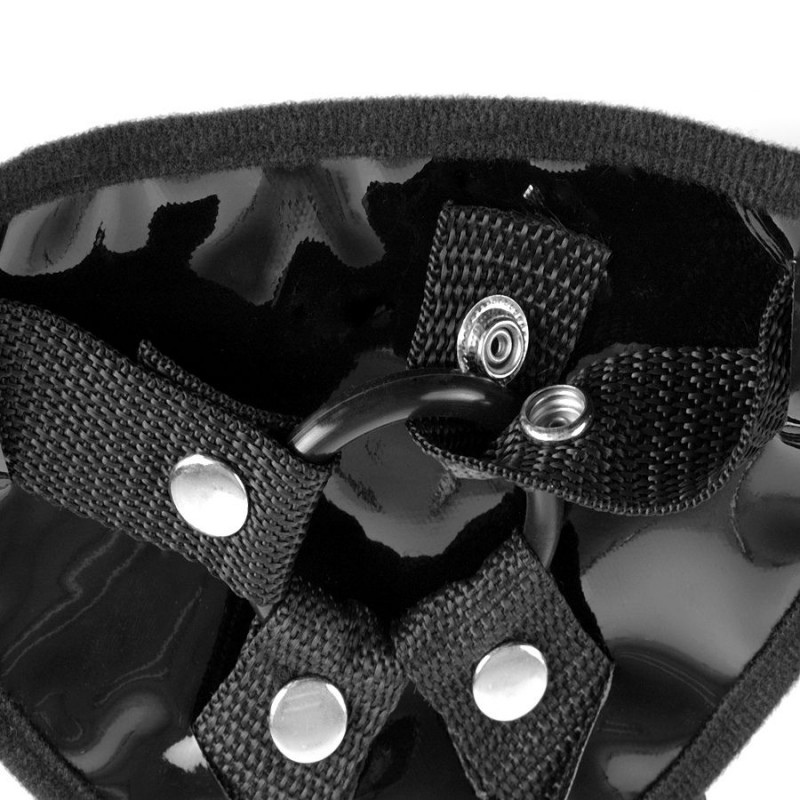 Diseñado para soportar juegos fetichistas extremos, este arnés cuenta con cintas ajustables y una anilla de silicona elástica en la junta tórica.