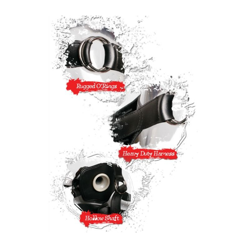El arnés de ajusta fácilmente a la mayoría de los tamaños y es realmente cómodo. Un largo tubo de plástico de una pulgada de diámetro puede ser colocado dentro del dildo para que pueda ser usado además por ambos sexos.