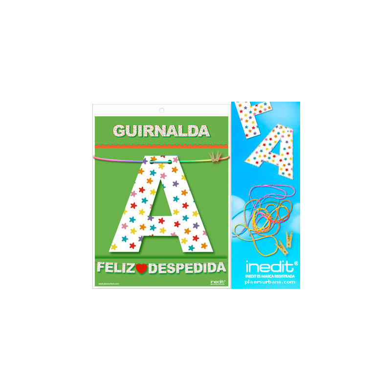 GUIRNALDA FELIZ DESPEDIDA (Cartulina impresa a dos caras 220gr) Contenido: Letras, cordel arco iris 3 metros, 2 Mini pinzas de madera. /