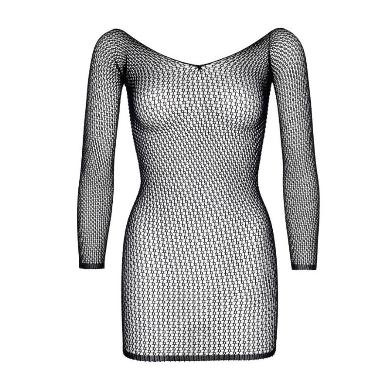 Mini vestido manga larga ajustado al cuerpo en cuerpo de red de la prestigiosa marca de lencería Leg Avenue.