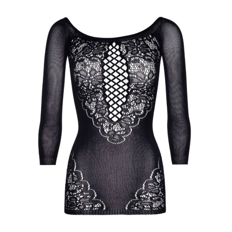 Mini vestido opaco sin costuras de encaje floral con mangas largas y escote de red de la prestigiosa marca de lencería Leg Avenue.