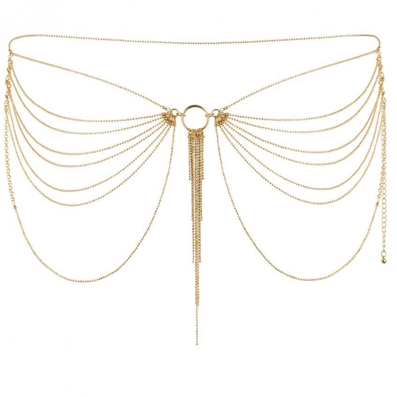 ¡Más usos! Prueba este complemento como un fantástico cinturón o como un sugerente sostén de cadenas doradas.