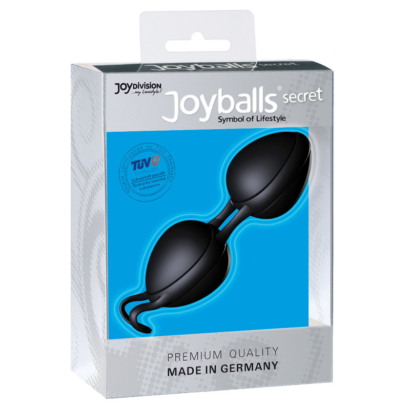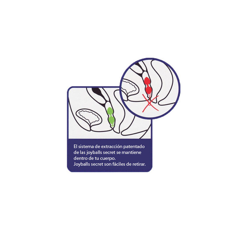 La caja de JOYBALLS incluye las instrucciones de una y una práctica bola de satén para guardarlas discretamente.