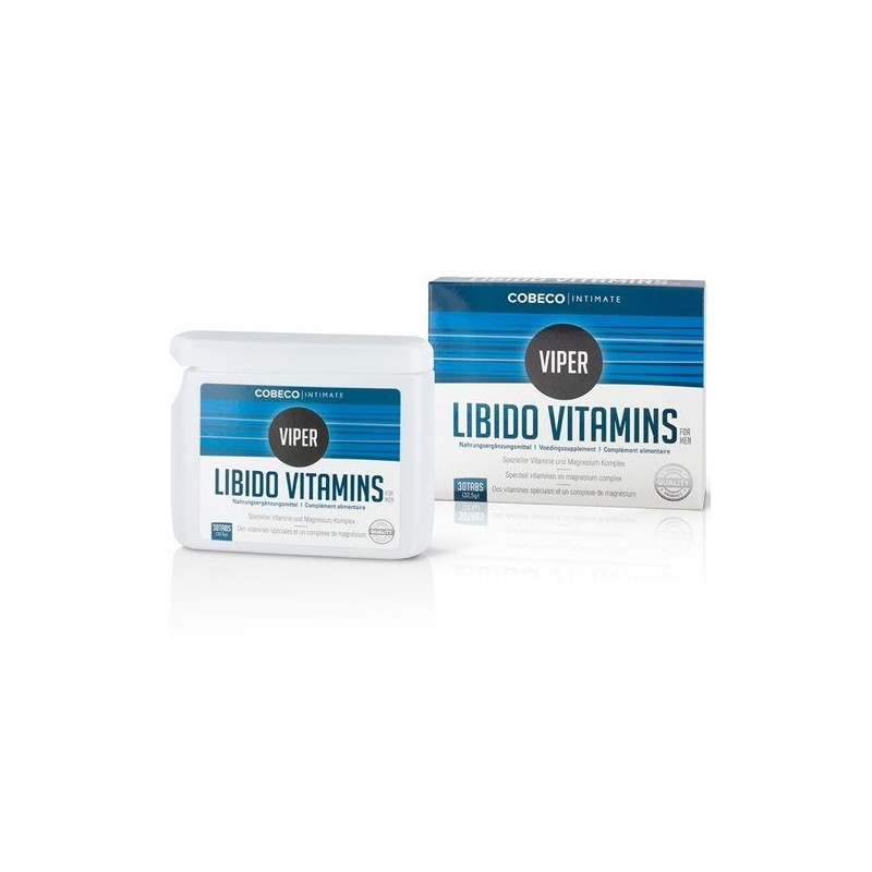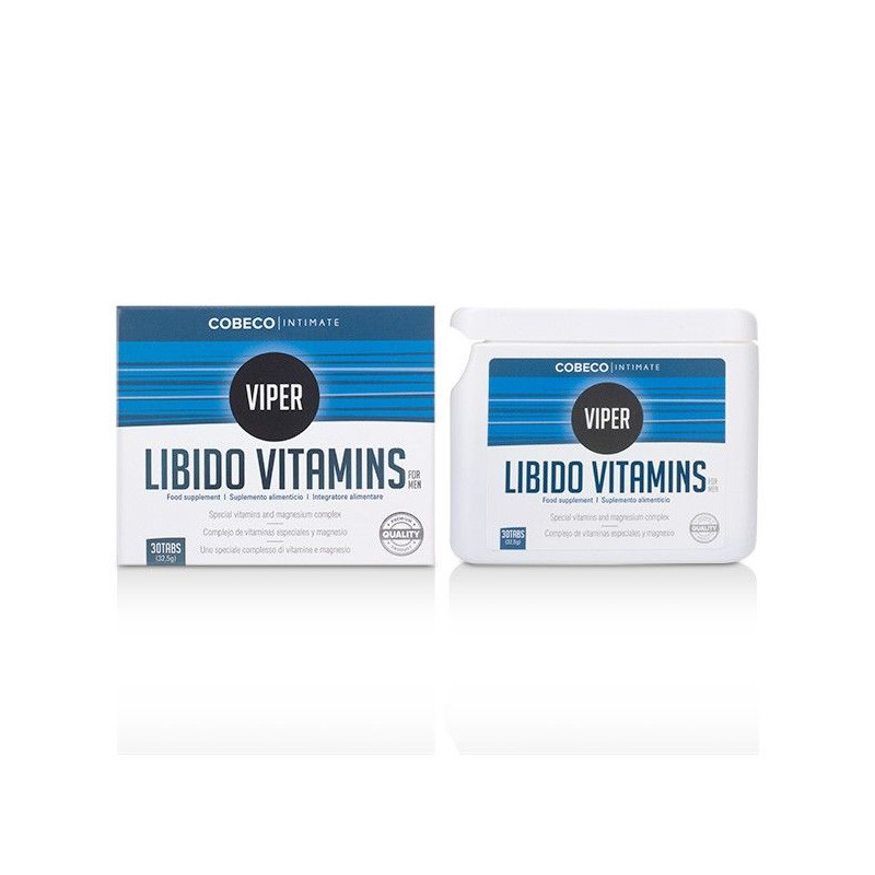 Cobeco Intimate Viper Libido Vitamins es un exclusivo suplemento alimenticio con vitaminas y magnesio que estimula músculos, nervios y mente. Tiene un efecto positivo en el funcionamiento saludable del sistema nervioso, rendimiento sexual y bienestar mental, lo que favorece la libido y ayuda a mantener la erección.