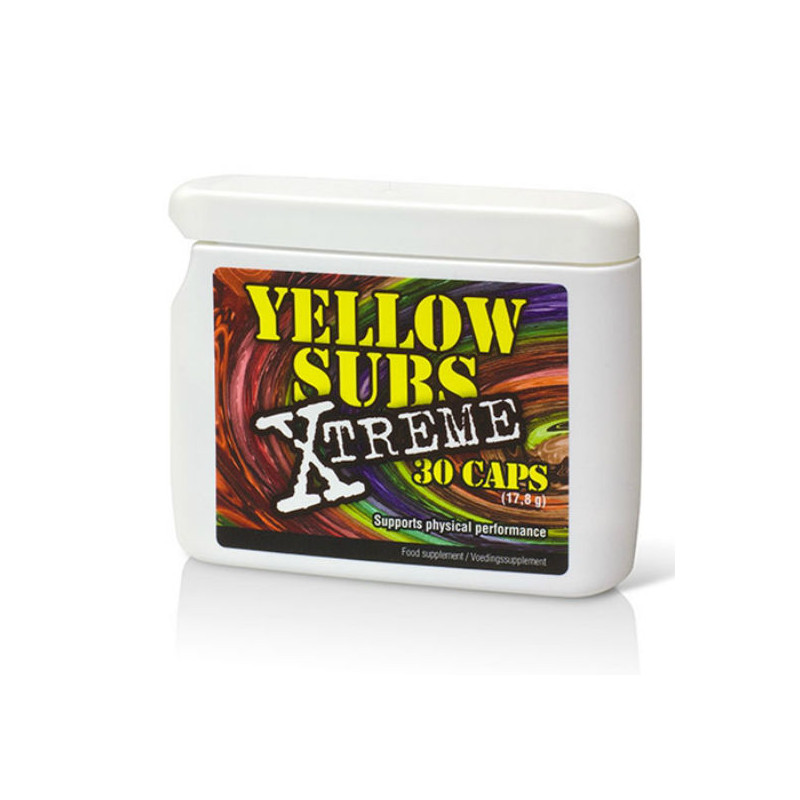 Yellow Subs Xtreme es un suplemento alimenticio bien equilibrado con vitaminas y minerales que refuerzan el esfuerzo físico. Estas cápsulas hacen uso de las propiedades únicas de los derivados naturales de la cafeína y funcionan como un efectivo potenciador de energía. Yellow Subs Xtreme proporciona energía extra, ayuda a mejorar el rendimiento físico y ayuda a perder y controlar el peso.