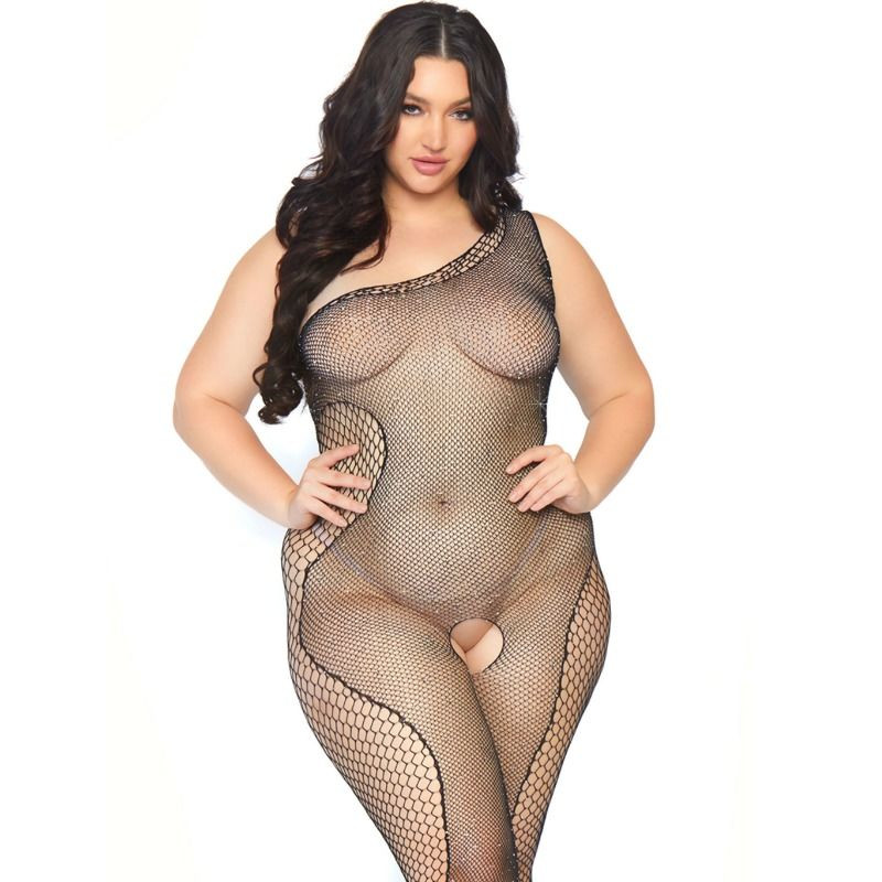 Bodystocking asimétrico sin entrepierna, con red más grande en los laterales, decorado con brillantes fabricado por la prestigiosa marca de lencería Leg Avenue. Con Leg Avenue reforzarás tu feminidad y obtendrás ese toque justo de seducción, sensualidad y elegancia.