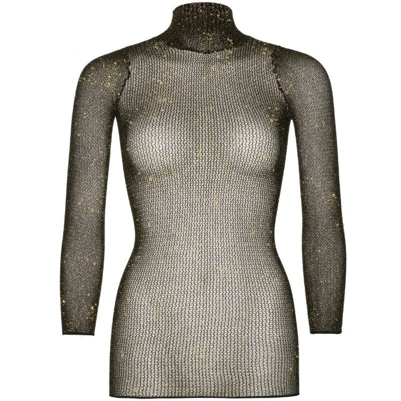 Sexy mini vestido de red y lurex de cuello alto y manga larga fabricado por la prestigiosa marca de lencería Leg Avenue.