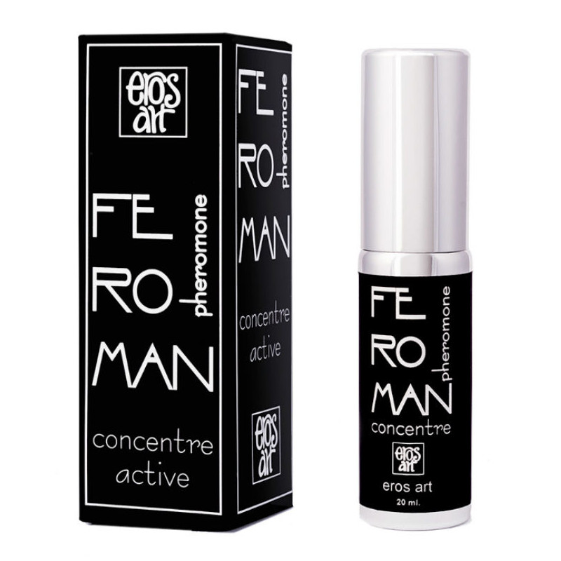 "Feroman concentre", tiene la propiedad de modular la producción propia de feromonas al alza mediante la acción sinérgica de sus componentes, triplicando la producción de androstadienona; su acción es casi inmediata; con “feroman concentre” se sentirá más seguro de sí mismo, más atractivo y deseado, y ganará más confianza para actuar y seducir. El producto está diseñado para activar, en el hombre, la potente acción de la síntesis de sus propias feromonas, más del triple de las feromonas ajenas o sintéticas.