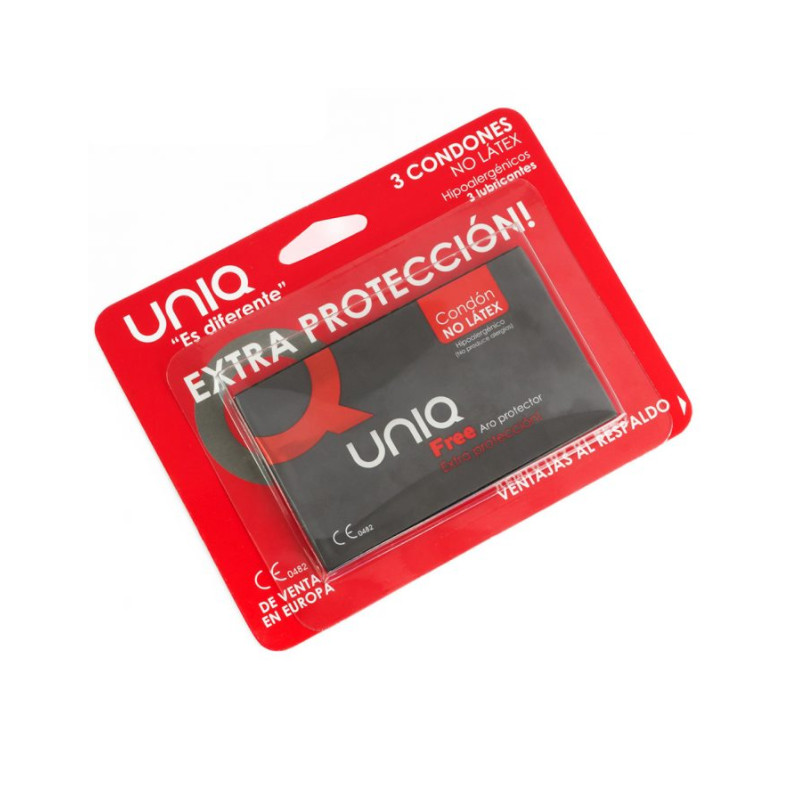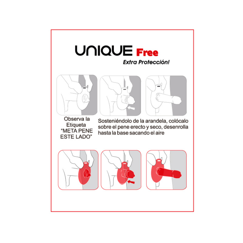 El condón UNIQ FREE posee un aro en la base que facilita y agiliza la postura, ofreciendo una mayor protección para quienes lo usan, de tal manera que las zonas pubianas quedan aisladas evitando el contagio de muchas enfermedades transmitidas a través de los fluidos corporales.
