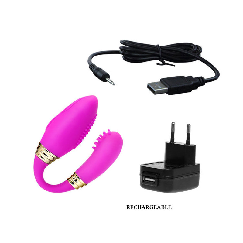 Este vibrador ergonómico en forma de U es ideal para utilizar en pareja , con distintos modos de pulsación que hacen un total de 7 funciones de vibración, dos motores independientes y totalmente flexible. El placer esta asegurado!!