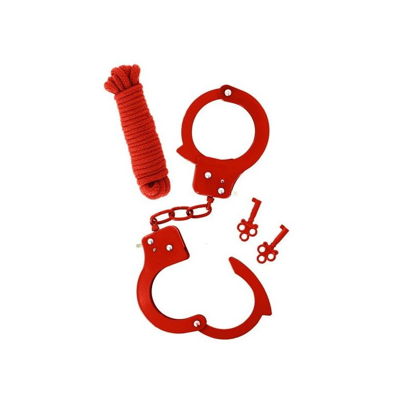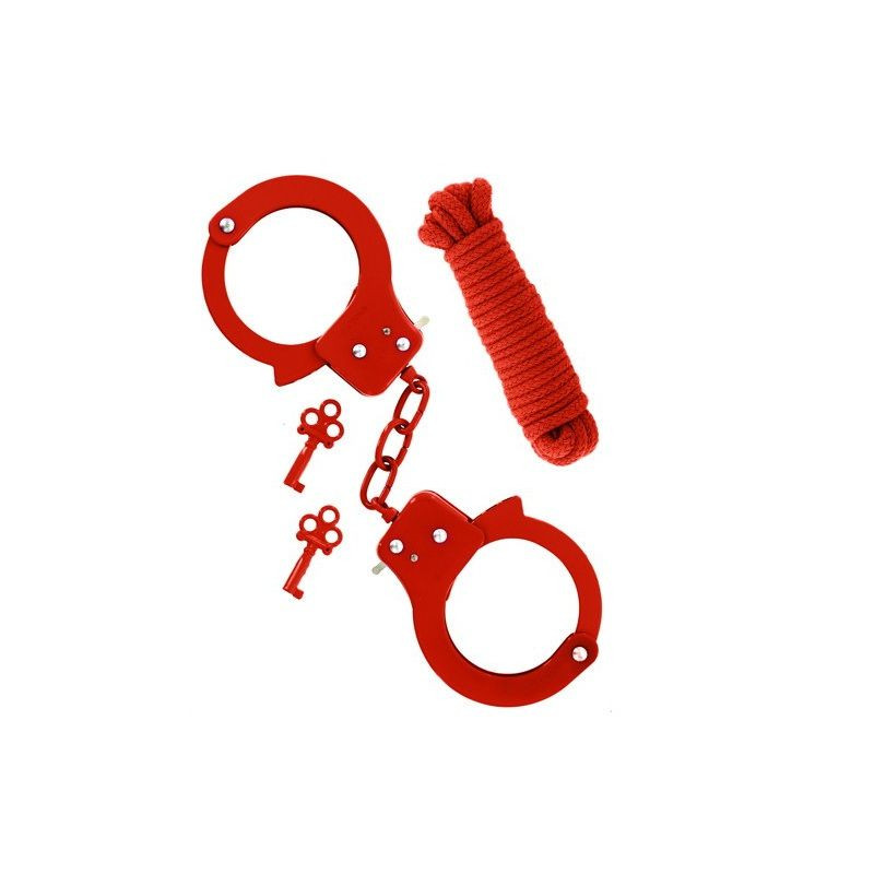 Desata tu pasión y lado mas fetish con este fabuloso kit compuesto por esposas + cuerda en color rojo.