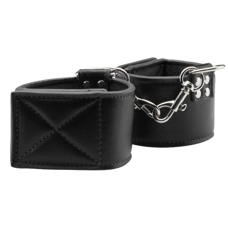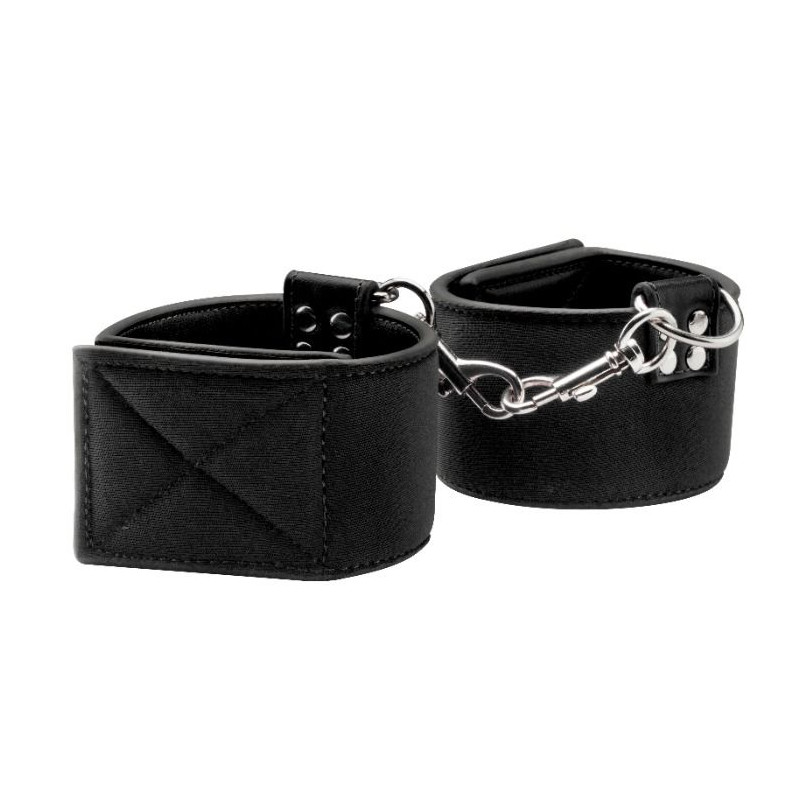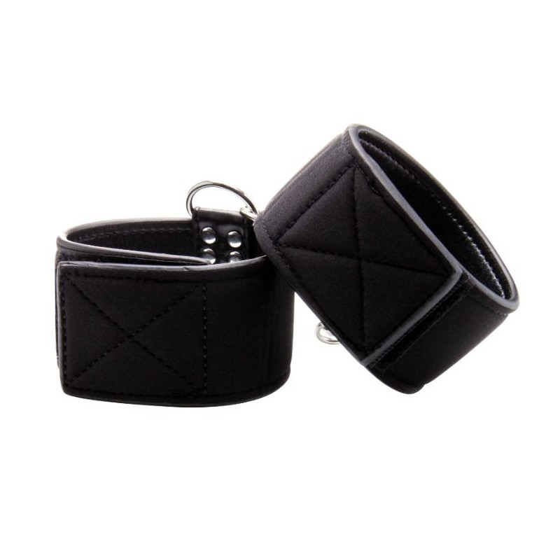 Estas esposas están diseñadas con un lado de cuero y otro de neopreno para que puedas elegir el material que sentirás en la piel simplemente dando vuelta las esposas. ¡El lado de neopreno es de color y el lado de cuero es negro para darle una apariencia más ruda! También tienen cierres de velcro para que le quepa a todos, un cierre a presión para intercambiarlas con otros juguetes para “bondage”!