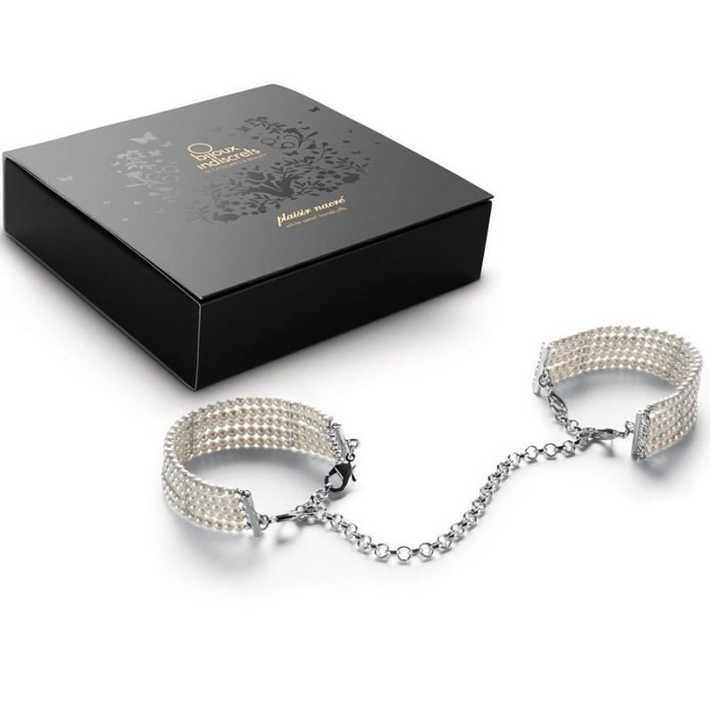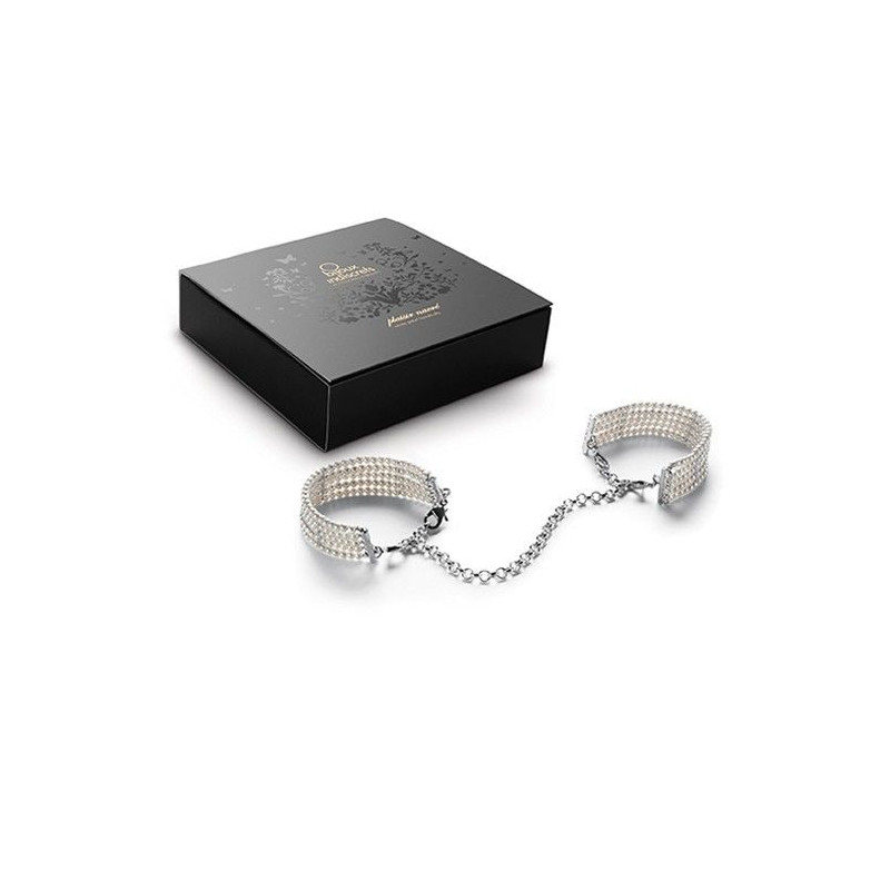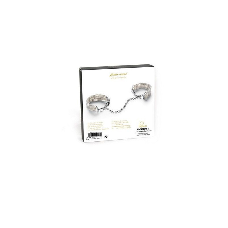 Unos brazaletes a los ojos de todos; unas sugerentes esposas en la intimidad con la sutileza del blanco. Un juego para ser cómplices. Contenido: esposas-brazaletes de perlas de tamaño y cierre ajustables.