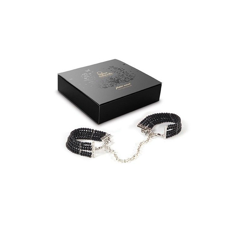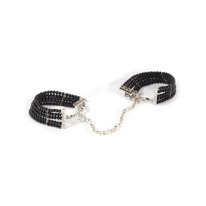Unos brazaletes a los ojos de todos; unas sugerentes esposas en la intimidad para las fantasías de dominación más sofisticadas. Un juego para ser cómplices. Contenido: brazaletes-esposas de perlas de tamaño y cierre ajustables.