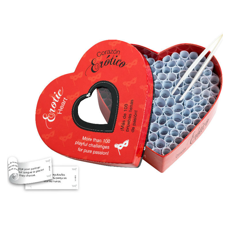 The Erotic Heart is a daring and enticing game for you and your partner. Either one of you takes a paper roll out of the box, using the tweezers. What is about to happen now? Will it be a playful seduction, an enticing foreplay, a fantasy to share or a daring erotic challenge?