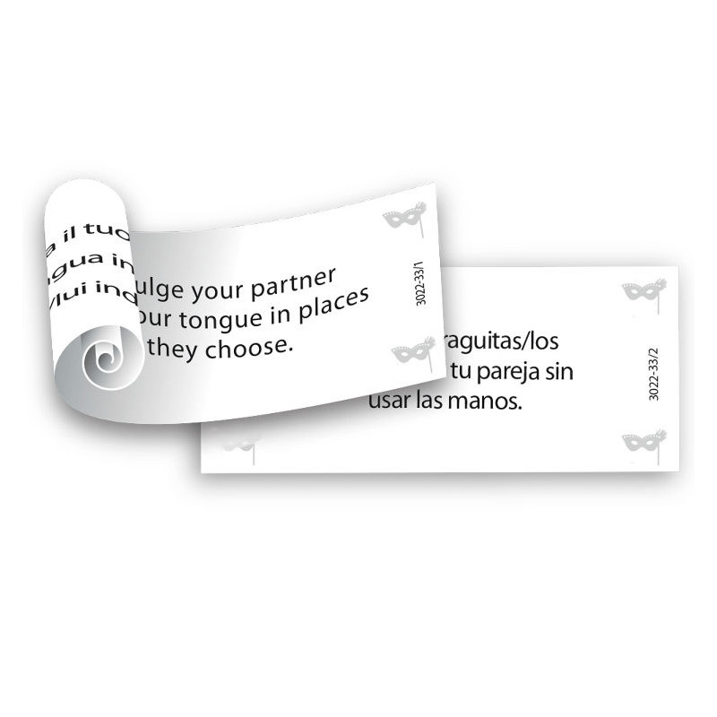 This gift is incomparable to any other game, there are no time limits and you will both be winners. In a disarming and humorous way, this gift will increase the intimacy in your relationship. Some tasks can be played immediately, but renting an erotic movie or the preparation of an exciting surprise will lead to a wonderful time together at a later moment.