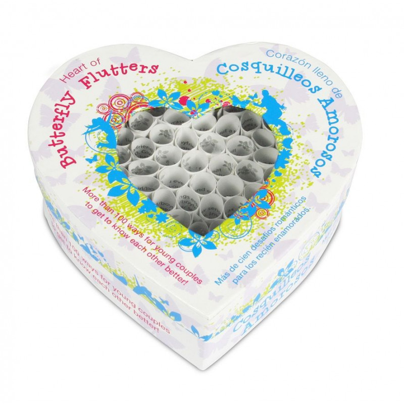 Con el Corazón lleno de Cosquilleos Amorosos, los recién enamorados aprenden a conocerse bien de una manera juguetona. En los más de cien rollitos de papel que contiene el corazón , hay preguntas y sorprendentes pruebas que seguro os harán disfrutar mucho.